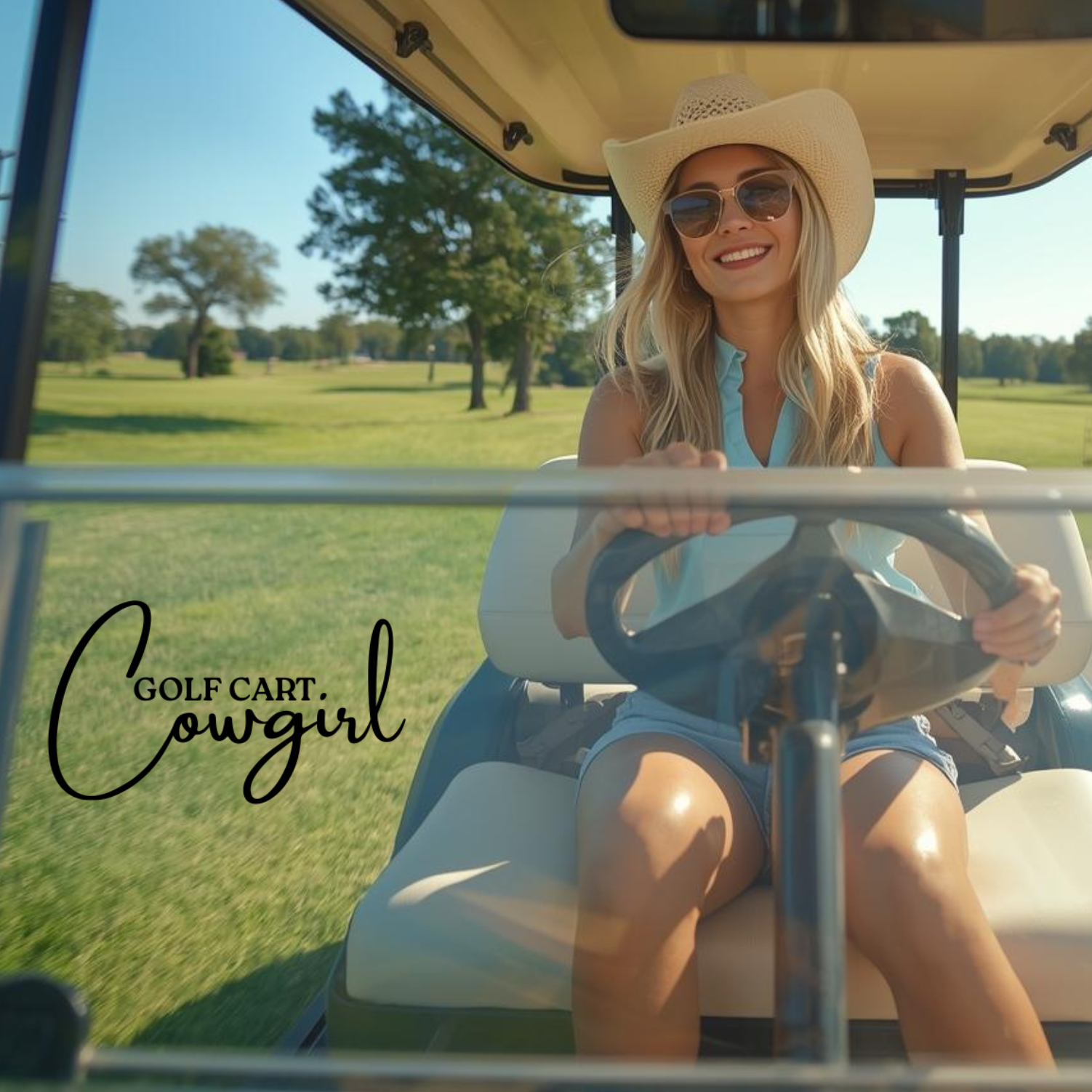 We're a little bit fairway, a little bit front porch - blending small-town charm, cowgirl confidence, and golf cart cruising energy. Whether you're chasing sunsets, tee times, or tailgates, we believe life's better with a little sparkle, a little sass, and a whole lot of heart. Saddle up - we ride at dusk.