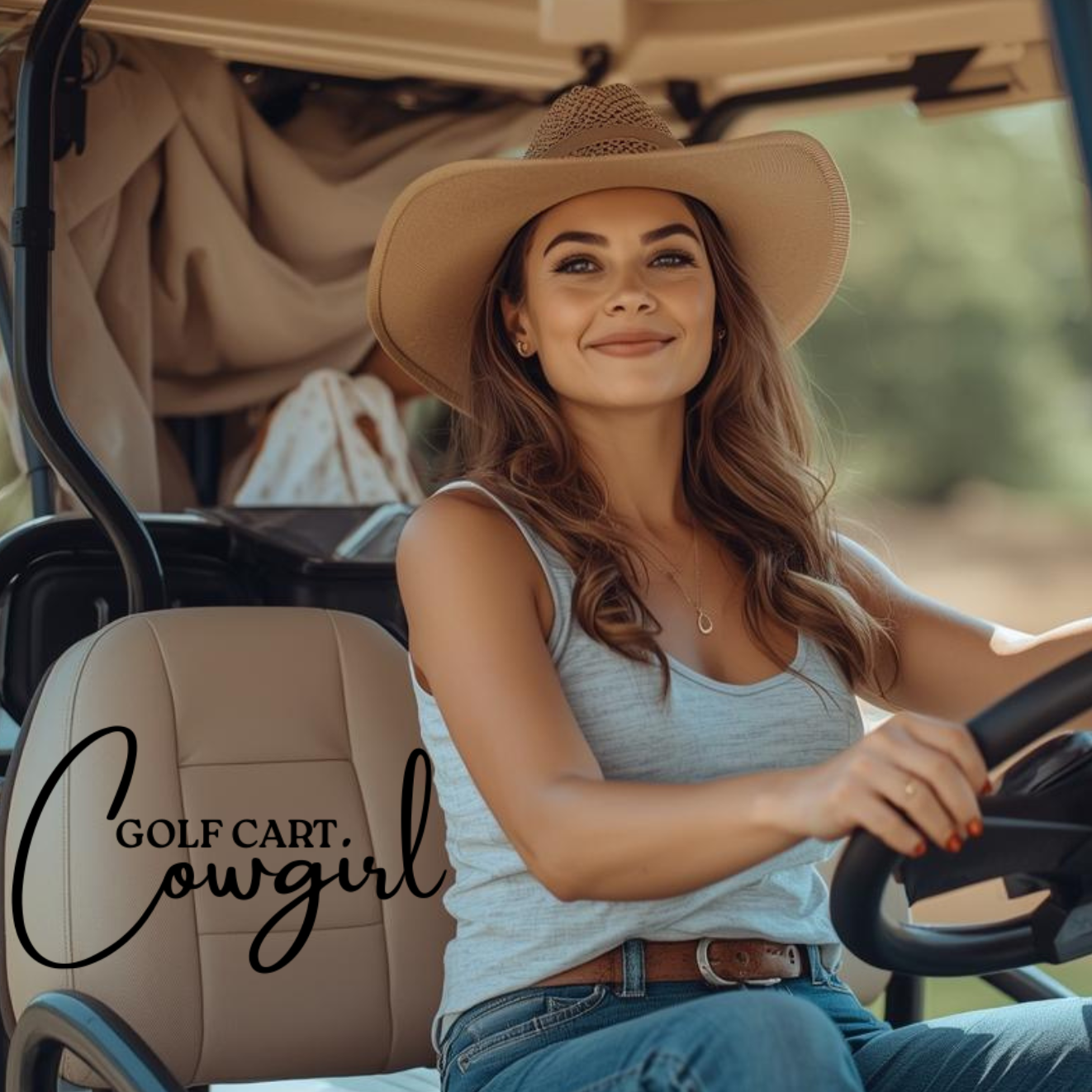 Classic golf cart cowgirl design with authentic style